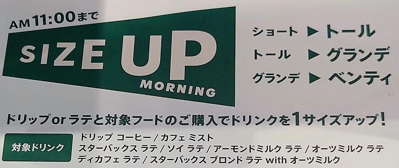 →ショートの値段でトールに1サイズアップ無料へ